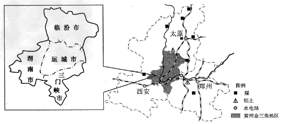 (1)“黄河金三角”地区按温度带划分属于_________带,按干湿区划分属于________区。图中的水电站是_________水电站,东西向穿越该地区的铁路线是_________铁路。