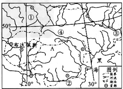 1.图中①②③④四条河流中,多瑙河是
