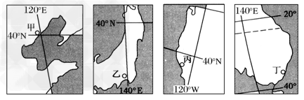 3、单选题 下列四国局部图中的甲、乙、丙、丁为各国重要海港,读图回答1~3题。