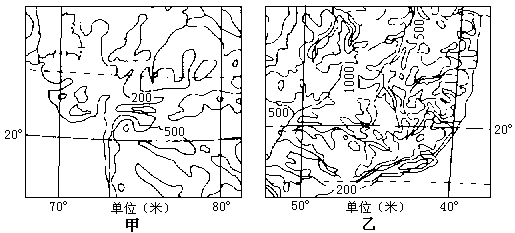 (1)甲、乙两图所示的大地形区名称是什么?它们在地形上有哪些相似之处?