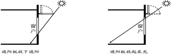 ③遮阳板长度不变,降低安装高度?④遮阳板长度不变,升高安装高度