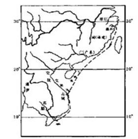 2、单选题 <<真腊风土记>>(元)记载:①白温州开船,西南行,历闽、广海外诸州港口,过七洲洋,经交趾洋到占城。又自占城顶风可半月到真腊;②真腊四时常如五六月天,不识霜雪,半年有雨,半年绝无;③信教者削发穿黄,偏袒右肩,其下系黄布裙,跪足。据此并结合下图,回答问题。