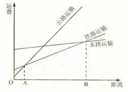 5、单选题 图是公路、铁路、水路三种运输方式距离与运费的关系变化图,据此完成下题。