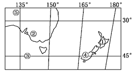 小题2:图示④为新西兰南岛,根据其纬度位置和海陆位置判断,该地的气候类型为温带海洋性气候。