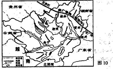 (3)广西的地理位置在区域经济发展中有哪些有利条件?(8分)