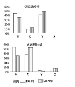 小题1:按W、X、Y、Z顺序分别对应的交通运输方式是(  )