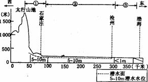 2、单选题  黄淮海平原地势十分平坦,海拔多在50米以下。从山麓到海滨,可以分为①山麓洪冲积扇平原(缓斜平原)、②冲积低平原、③滨海平原,三个组成部分的地表物质,地下水的化学成分、土壤、植被以及农业发展情况都有明显差别。读图完成26~28题。