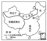 4、填空题 我国各地自然地理环境差异明显,形成了特点各异的三大自然区。读下图完成26~27题。