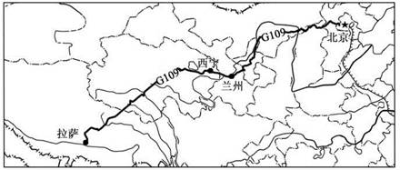 1、单选题 109国道东起北京,西至拉萨,跨越8个省级行政区,全长3900多千米。读图,回答下列问题。
