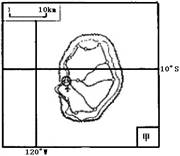 (2)两岛相比,实际面积较大的是(?)岛。当乙岛的区时为6月9日6时,甲岛所在的时区的区时为6月(?)日(?)时。我国处在隆冬季节,甲岛盛行风向为(?)风。(6分)