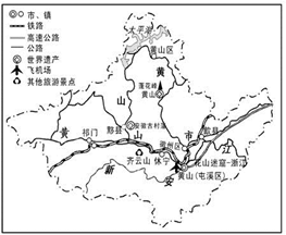 (2)试从资源特点、地域组合状况角度指出黄山发展旅游业最突出的两个优势。(2分)