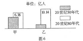 5、单选题  图6表示甲乙两类国家的城市人口增长图。读图,回答问题。