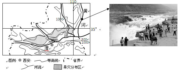 (1)黄河壶口瀑布位于黄河中游河段,瀑布流向与此河段的整体流向一致,图中照片的拍摄者此时正位于?省(简称)境内。(1分)