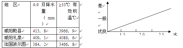 (4)试分析渭北“旱腰带”地区葡萄种植的优势气象条件。(2分)