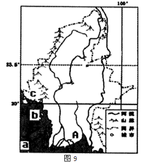 (l)a为当地夏季的主导风向,b、C为当地沿海白天与晚上的常见风向(称为海陆风),从成因、影响的时空尺度上比较a、b的差异。(12分)