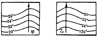【小题1】甲图中温度向北递增,位于南半球,洋流自低温向高温方向流动,为寒流;乙图中温度向南递增,位于北半球,洋流自高温向低温方向流动,为暖流。