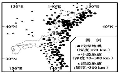 【小题1】日本及其附近海域震源深度的分布特点是 ( )