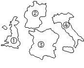 5、单选题 读下面四个欧洲国家轮廓图(按等比例缩放),回答问题。