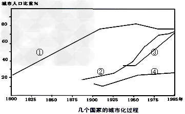 4.按照城市化进程的一般规律推断,当今图中四个国家可能属于发达国家的有