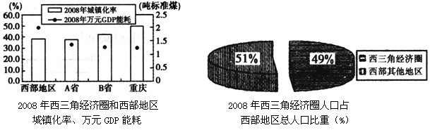 (1)西三角经济圈包括重庆A______________、B________________等三个省(市)。