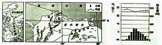 材料一:马拉开波盆地(左图)位于南美洲,四周山地环绕,盆地中心是南美洲最为湿热的马尼拉开波湖,湖区大部分高温多雨,年平均降水量1500毫米以上。湖泊东部的奥里诺科河水能蕴藏量大,流域面积88万平方公里,人口约有225万,人烟稀少。