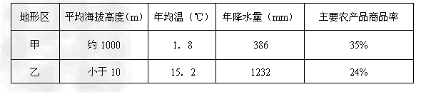 (4)简要分析乙地区农产品商品率低的主要原因。