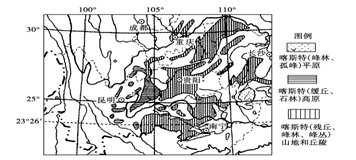 4、单选题 读“某区域喀斯特地貌分布图”,据此回答小题。