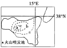 4、单选题 下图中的虚线是某岛火山喷发后火山灰厚度等值线,a<b<c,读图回答下列问题。