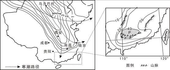 (2)分析图中P区域冷冻灾害高发的原因,简述该区域农业生产预防冷冻灾害可采取的主要措施。(6分)