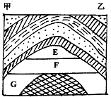 2、单选题 ? 20世纪50年代,我国地矿程人员在黑龙江松嫩平原某地区经多年地质勘探,判定本地区为大型背斜构造,储油的可能性极大。后经开采,原油喷出。本地区地质剖面如下图所示。据此完成1—3题。