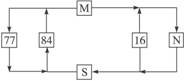 1、单选题 读图,水循环总量为100单位,按照全球多年水量平衡规律推算出M、N分别为(? )