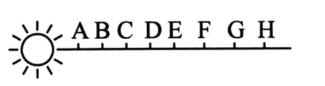(1)若该图为太阳系中八大行星排列顺序示意图.写出下列字母代表的行星名称:A     ,H