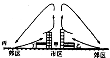 4、单选题  ? 由于城市人口集中,工业发达,释放出大量废气和废热,导致城市气温高于郊区,从而引起城市和郊区之间的小型热力环流,称之为城市热岛环流。下图为“城市热岛环流示意图”,读图完成1—2题。