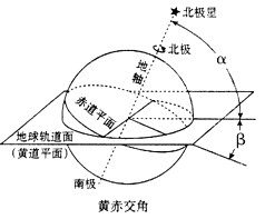 5、单选题 读“黄道平面与赤道平面的交角图”,回答1—2题。