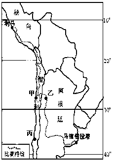 1、单选题 图为南美洲部分地区图。读图回答题。