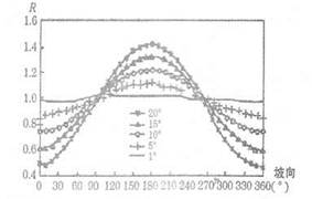3、单选题 下图为270N某山地l月5个不同坡度R值随坡向变化曲线(R为起伏地形下太阳辐 射与水平面太阳辐射之比)。其中坡向从正北开始,顺时针方向度量,即正北为00正东为 90°,正南为180°,正西为270°。读图回答下列问题。