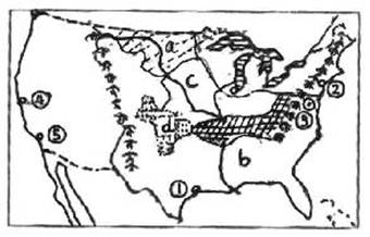 1、综合题 读美国部分地区轮廓图,回答题。