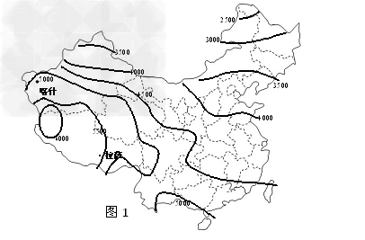 材料一:中国各地雪线高程等值线图(图1单位:米) (注:在很多地区因为没有超过雪线高度的高山,图中的雪线高度仅是预测值,而并不真实存在。因此,这张图有一些地方的雪线分布是推测出来的。)