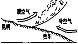 1、单选题 读“昆明准静止锋示意图”,回答下列各题。