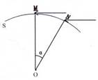 2、单选题 图中弧S为某局部经线圈,M、N两地纬度相同,O为该经线圈圆心,太阳光与S相切于M,读图完成1~3题.
