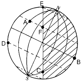 4、综合题 下图为“北京时间为10点时的太阳光照示意图”,读图完成下列要求。(20分)