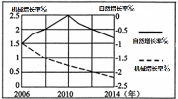 小题2:该省位于我国东部地区,2006年以后,由于产业升级和转移,使劳动密集型产业向中西部转移,该省所需劳动力数量减少,所以导致机械增长率逐年下降。选项A正确。