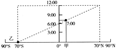 3、下图中四幅小图,能正确表示乙地24小时内太阳高度随时间变化的是