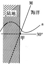 5、单选题 下图中数字为纬度,M为晨昏线,a为最冷月等温线。读图回答1~2题。