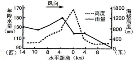5、单选题 下图为北半球某山地东西坡年降水量随高度分布图,读图回答问题。