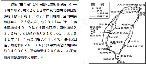(1)结合材料一,选取两个角度举例分析台湾自然旅游景观特色及形成条件。