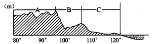 2、单选题 下图为我国沿32°N的地形剖面图,图中A地形区丰富的能源、B地区主要的土壤、C地区主要的作物分别是