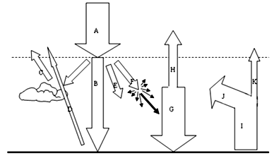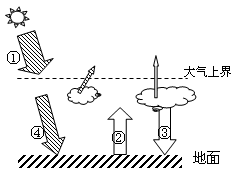 1、单选题 图表示大气受热过程。读图完成下列小题。