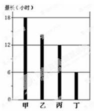 1、单选题  下图为某日甲、乙、丙、丁四个地点的昼长状况,据此回答下列各题