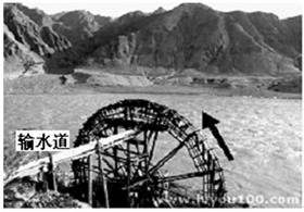 1、单选题 该图中水车是我国黄河流域最古老的提灌工具,水车的转动是以水流为动力,箭头表示水车旋转方向,完成问题。